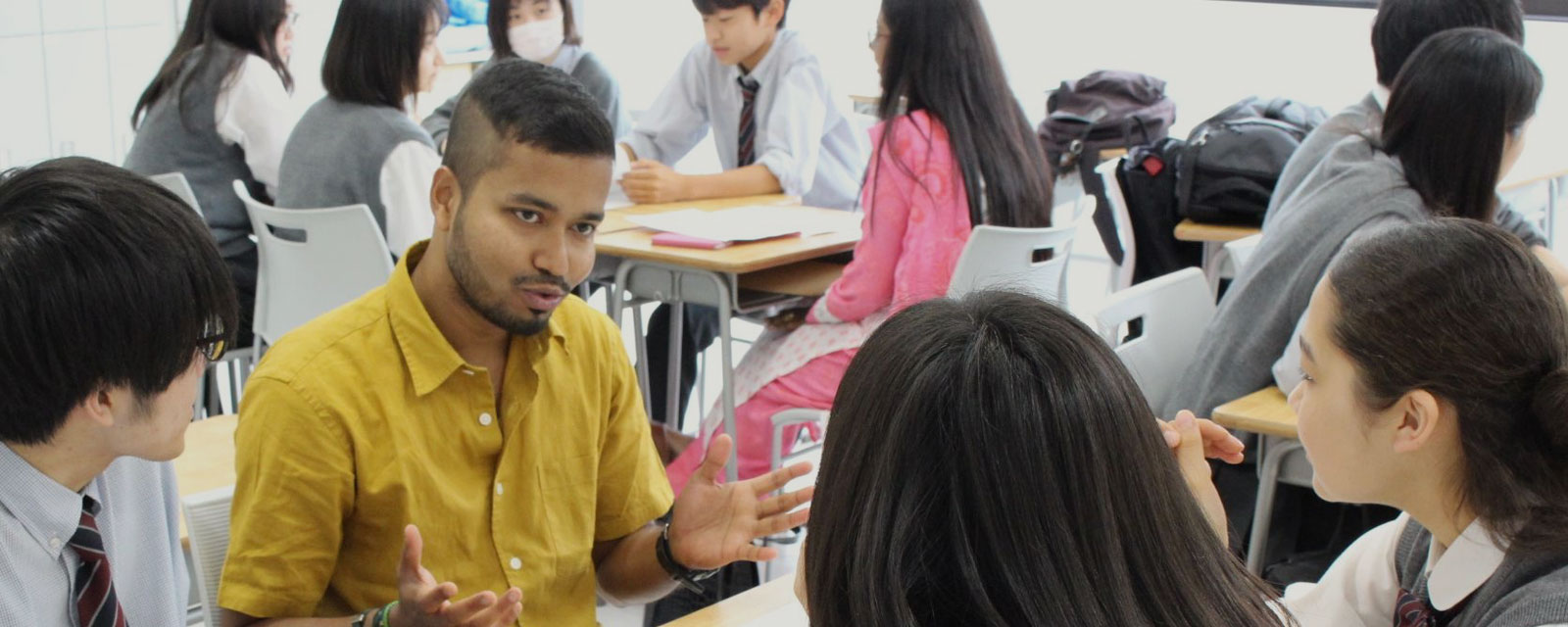 本校では、様々な取り組みを通して、受験だけが目標の英語力ではなく、読む、聞く、話す、書くという4技能をバランスよく身に付け、実践的に使える生きた英語力の習得を目指していきます。また、英語の他に中国語を学ぶこともできます。