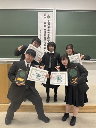 15日から17日にかけて、本校が当番となり、第69回全道高等学校弁論大会が北海学園大学を会場に行われました。本校から弁論部の4名の弁士が出場して、2名の弁士が入賞し、この2名が全国大会の出場権を獲得しました。