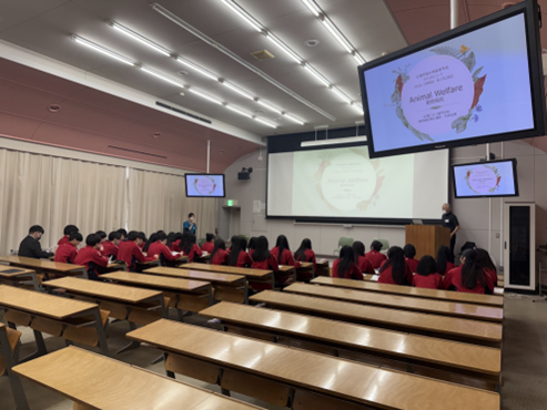 2026年1月28日(水)に、札幌どうぶつ専門学校より名取裕憲様・島田寧々様、学校犬の海くん・美々ちゃんにお越しいただき、セラピードックについての知識や、動物福祉や動物介在療法のあり方について講演していただきました。実際に介護の現場でのエピソードなどもお伺いし、セラピードックのもつ大きなパワーも感じることができました。