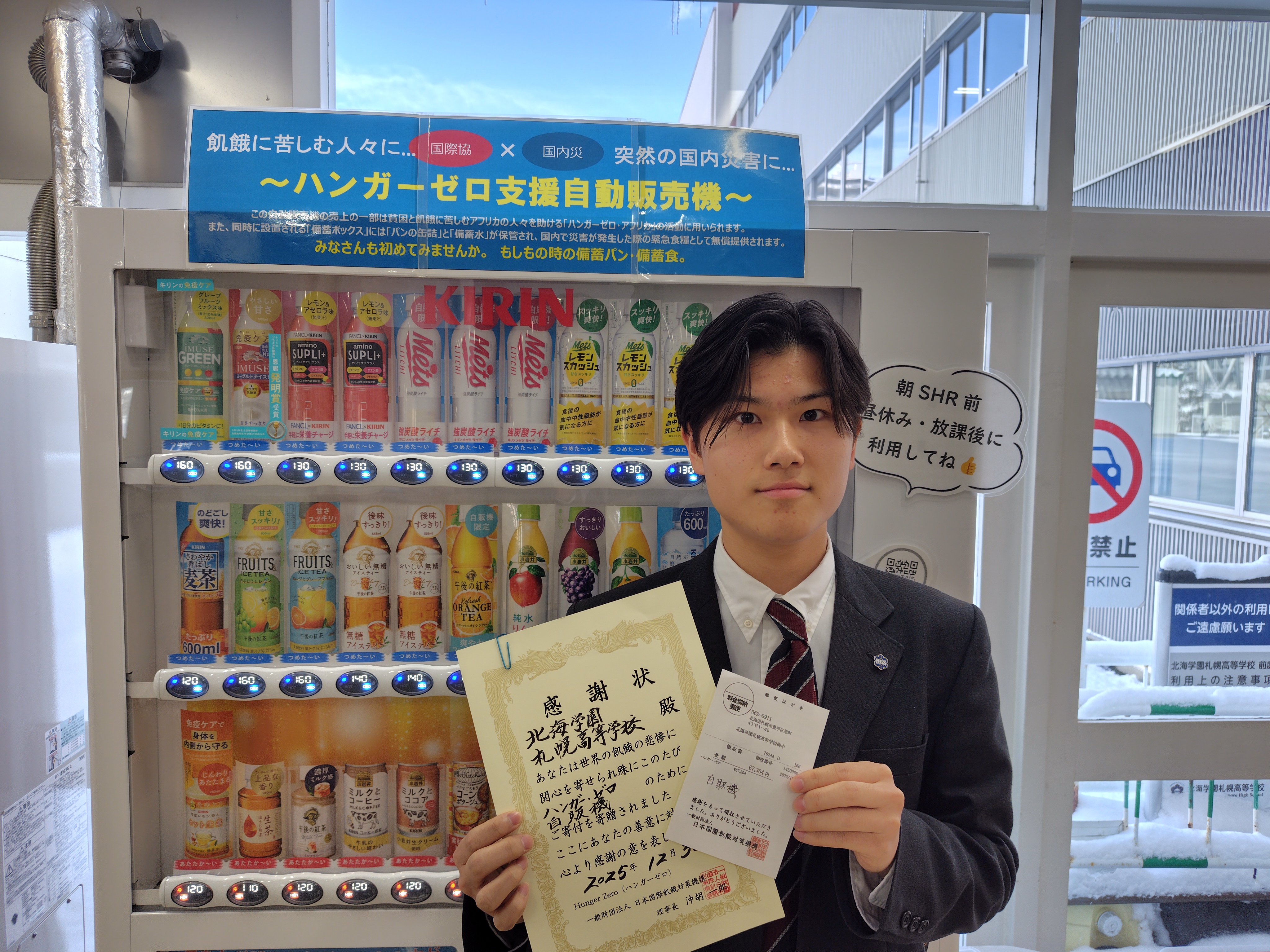 皆さん、1階憩いの広場にあるハンガーゼロ支援自動販売機をご存じですか?