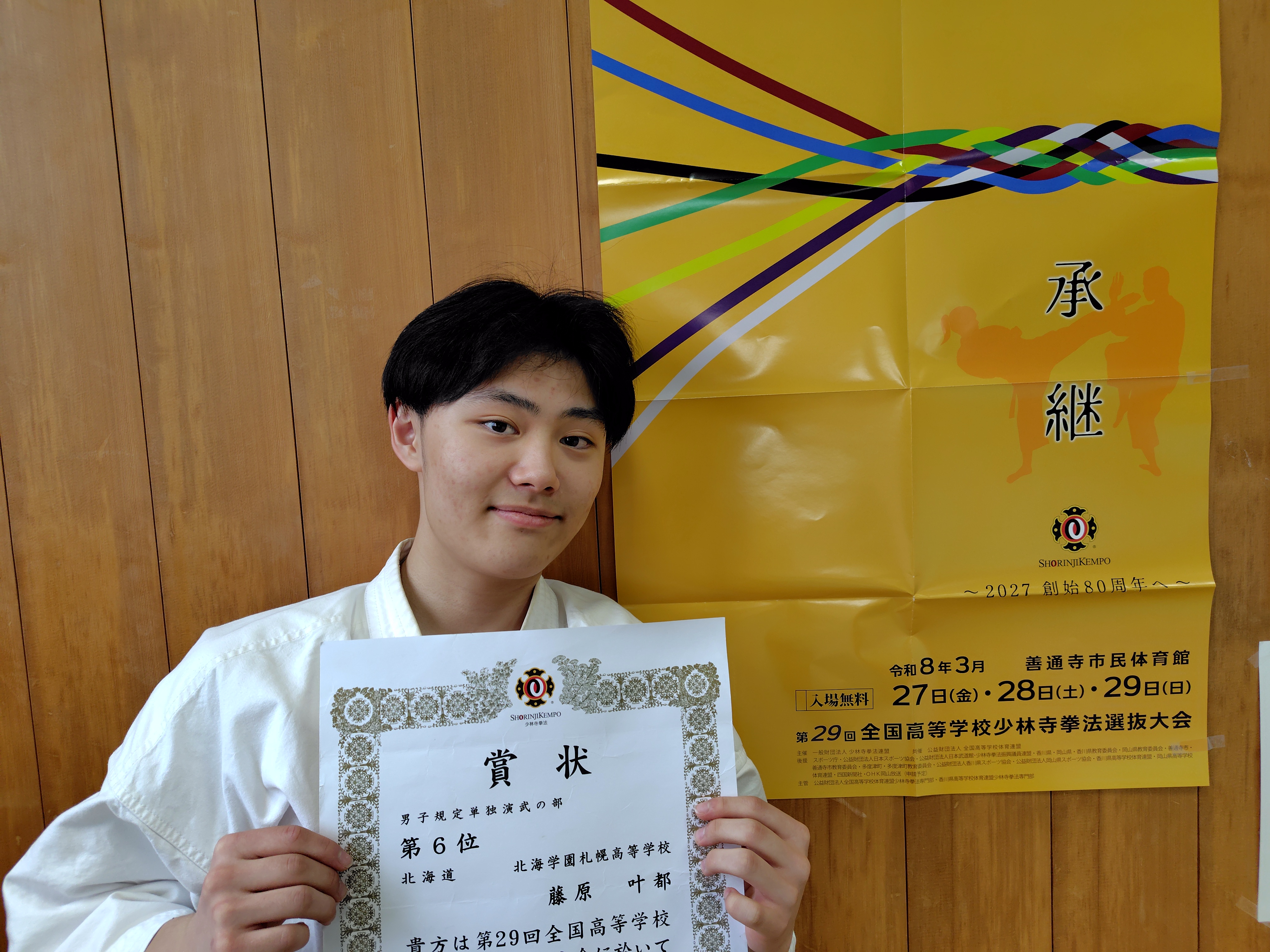 3月27日(月)~30日(日)に香川県善通寺市民体育館にて第29回全国高等学校少林寺拳法選抜大会が開催され、本校少林寺拳法部は女子自由単独演武の部、男子規定単独演武の部、男子自由組演武の部、男子団体演武の部の4部門に出場しました。